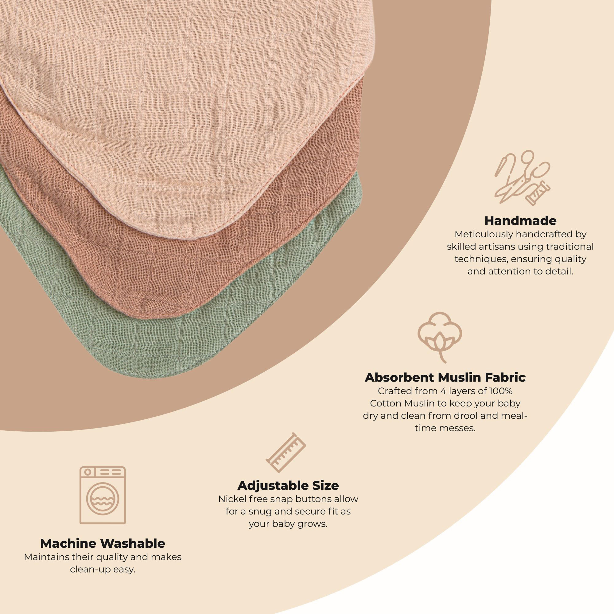 This set of three muslin cotton bibs from Crane Baby is designed for everyday comfort, function, and style. Made from soft, breathable muslin cotton, each bib is gentle on baby’s delicate skin while providing excellent absorbency for drool, spills, and teething moments. The lightweight, textured fabric becomes even softer with every wash, and the adjustable snap closure ensures a secure, comfortable fit as your baby grows. Finished in calming, modern colors, these bibs are as practical as they are beautiful—perfect for daily use or as a thoughtful baby shower gift.