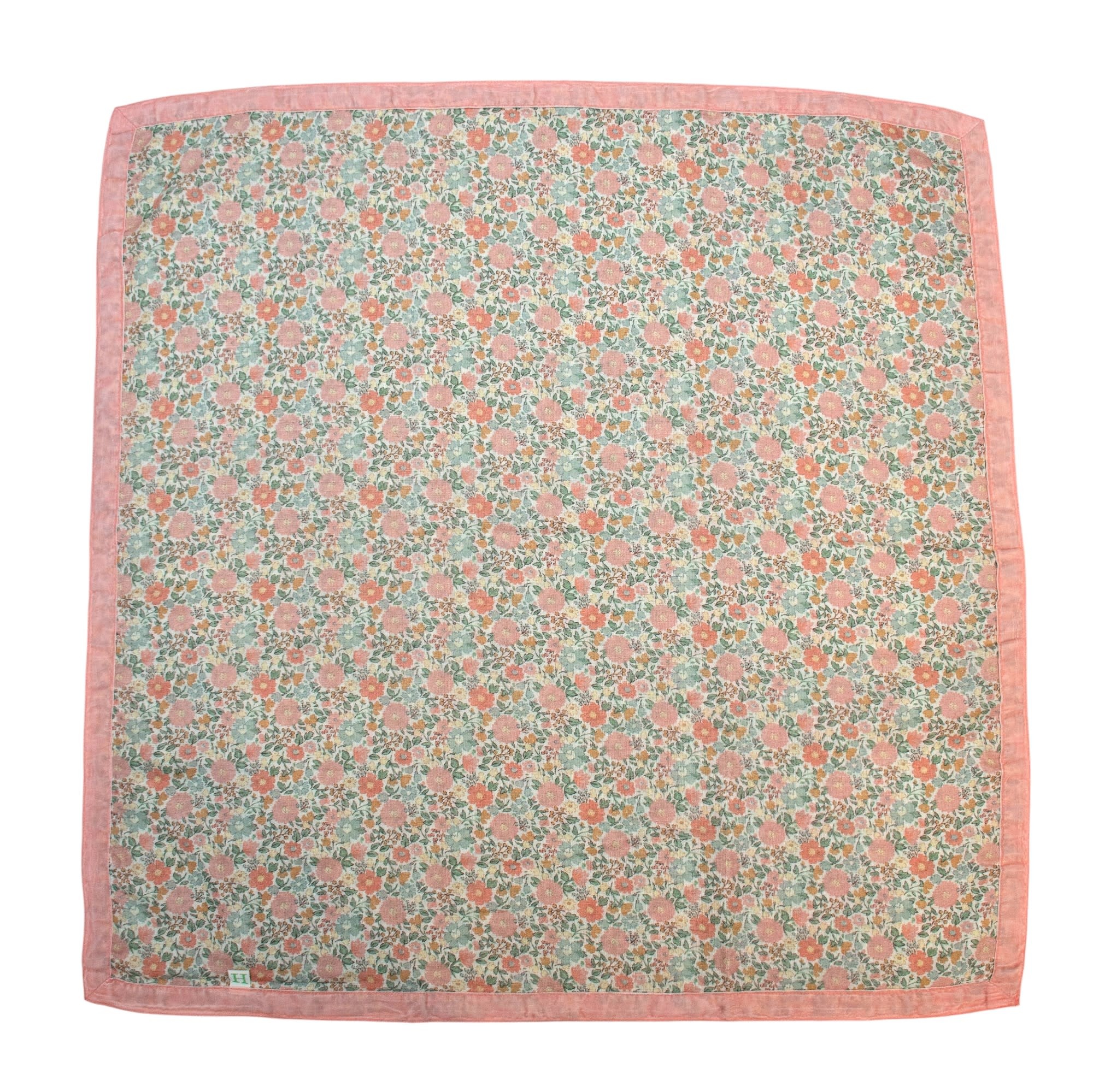 This beautifully crafted baby blanket from Helmsie combines softness, artistry, and thoughtful detail. Made from four layers of breathable cotton muslin, it offers gentle warmth while remaining lightweight and cozy—perfect for year-round comfort. The hand-drawn floral pattern features delicate blooms in a perfectly muted palette, creating a timeless and soothing look. Finished with a hand-dyed cotton velvet trim, the blanket is framed with an elegant touch of texture that adds both visual depth and extra warmth. Soft to the touch and generously sized, this blanket is ideal for swaddling, cuddling, stroller rides, or as a cherished nursery accent.