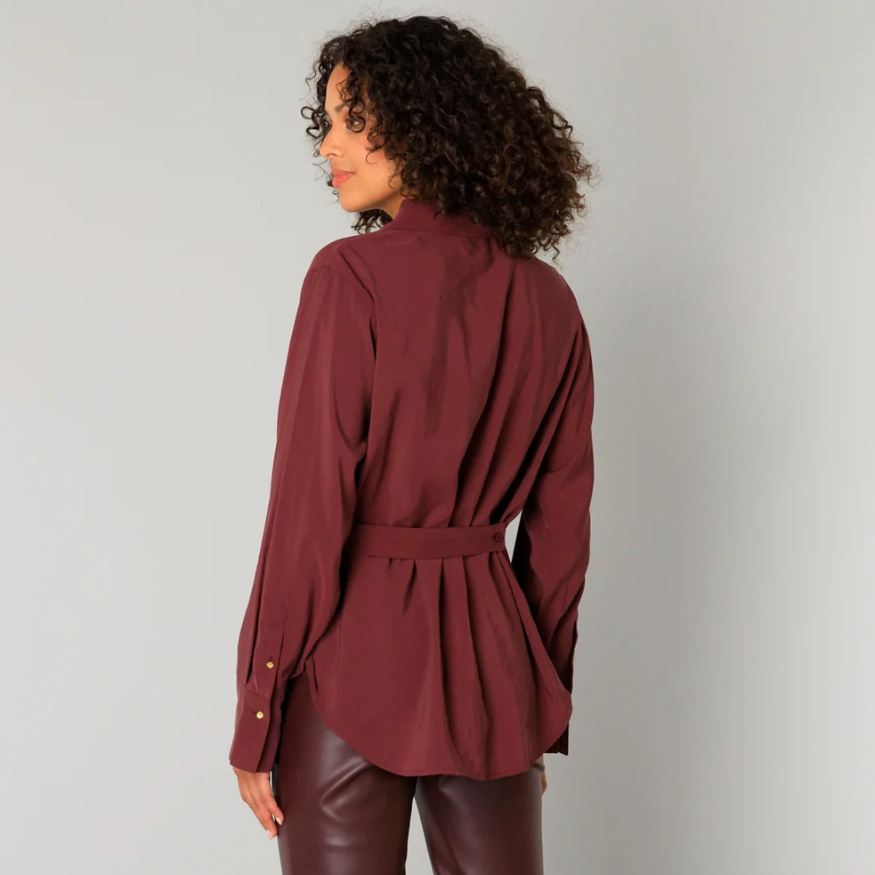 The Clara blouse Port Yest is an elegant essential with a modern, understated feel. Crafted from a supple viscose blend, it drapes beautifully against the body while remaining soft and comfortable to wear. The fabric’s matte finish adds a refined, polished touch. Designed with a straight cut for a clean silhouette, this blouse features a versatile tie belt with two loose loops that can be fastened to define the waist or left untied for a relaxed look. Thoughtful details and timeless styling make it an easy piece to dress up or down.