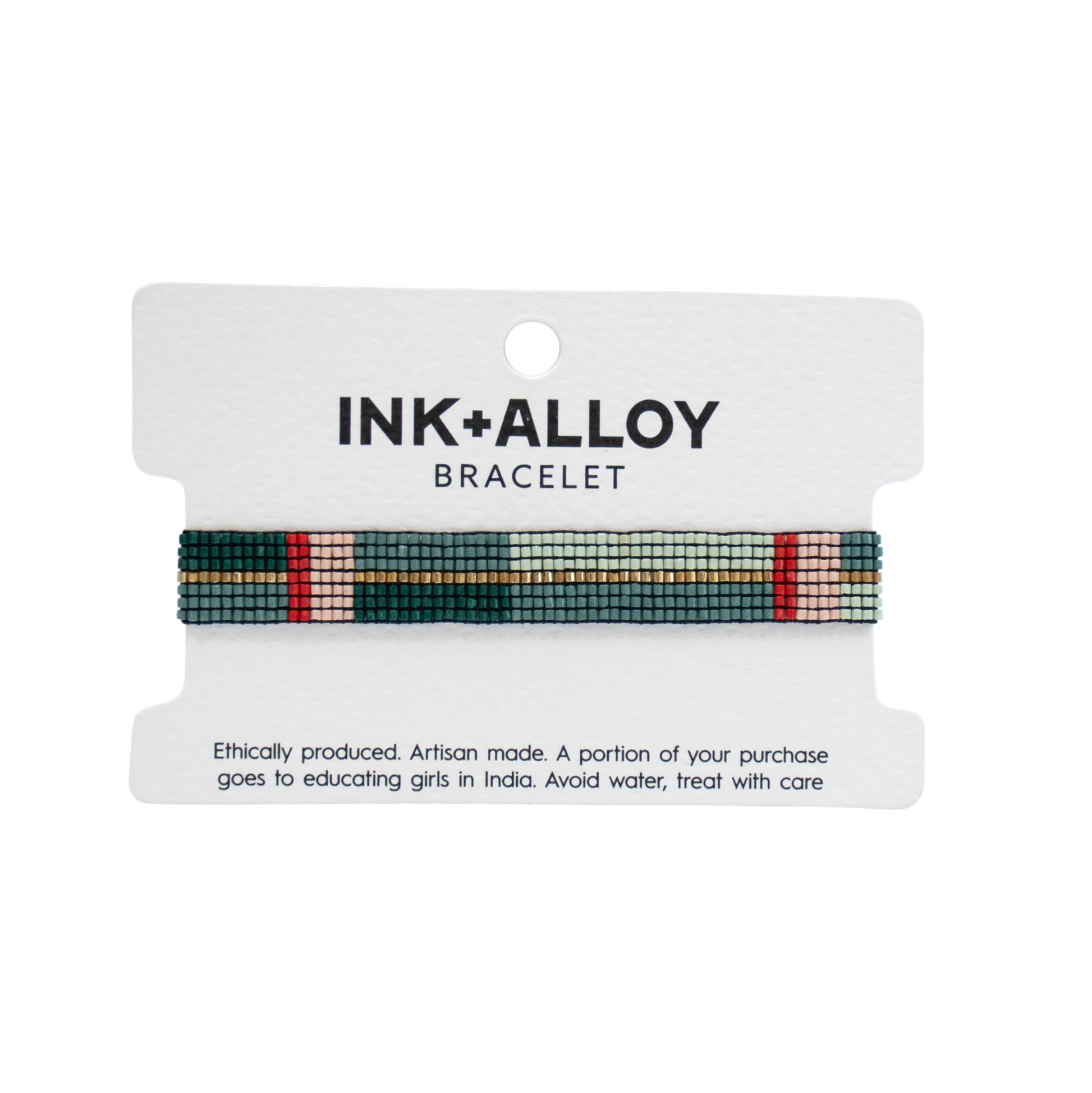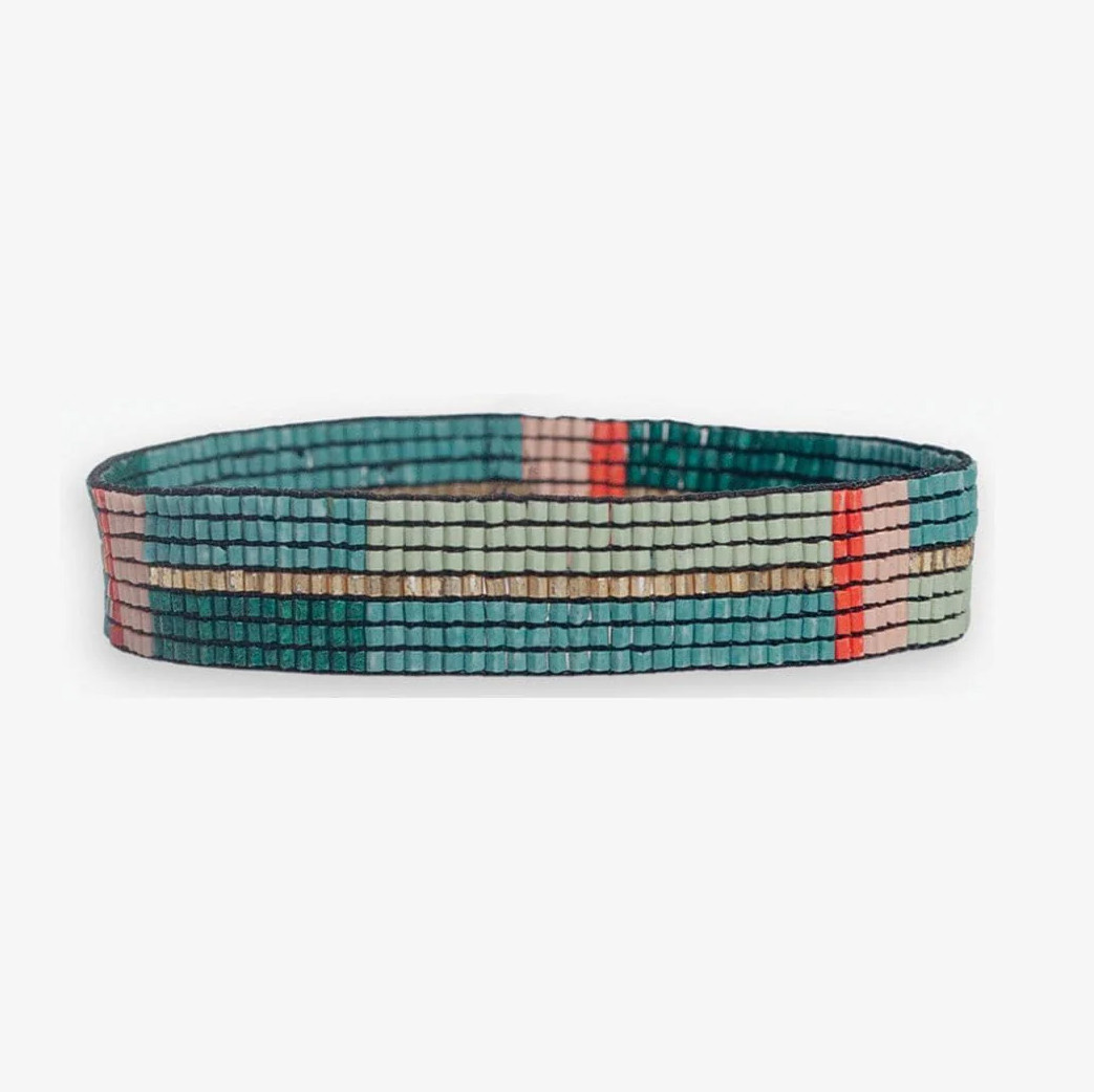 The Alex Beaded Colorblock Teal and Poppy Bracelet from Ink+Alloy blends rich, earthy tones with a bold pop of color for a striking yet wearable design. Handwoven with fine glass seed beads, this bracelet features deep teal and soft sage colorblocking accented by warm poppy red, blush, and subtle gold detailing for a refined finish. Lightweight and flexible, it’s designed for comfortable everyday wear while adding depth and interest to any outfit. Wear it alone for a polished statement or stack it with coordinating styles for a layered, artisan-inspired look.