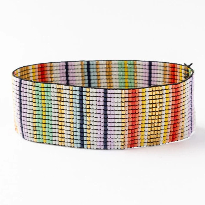 This handmade Luxe stretch bracelet Kenzie is lightweight, comfortable and a grab-and-go accessory. Bold enough to stand alone, yet versatile enough to wear alongside your everyday watch + go-to stackers, this medium-width bracelet is just what your wrist game has been missing. The high-quality seed beads are carefully selected and arranged on a flexible, stretchy cord, ensuring a comfortable and adaptable fit for most wrist sizes.