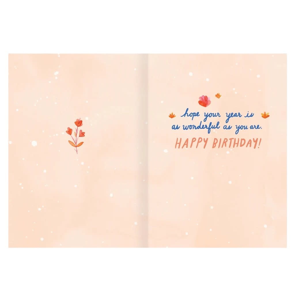 - inside verse "Hope your year is as wonderful as you are. Happy Birthday!"