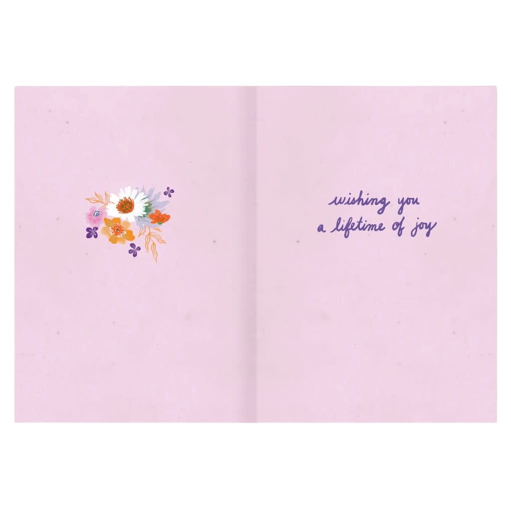 Celebrate love, joy, and new beginnings with this beautifully crafted Floral Cake Wedding Greeting Card from Biely & Shoaf. The perfect way to send your heartfelt wishes to the happy couple. Illustrated by Meera Lee Patel.