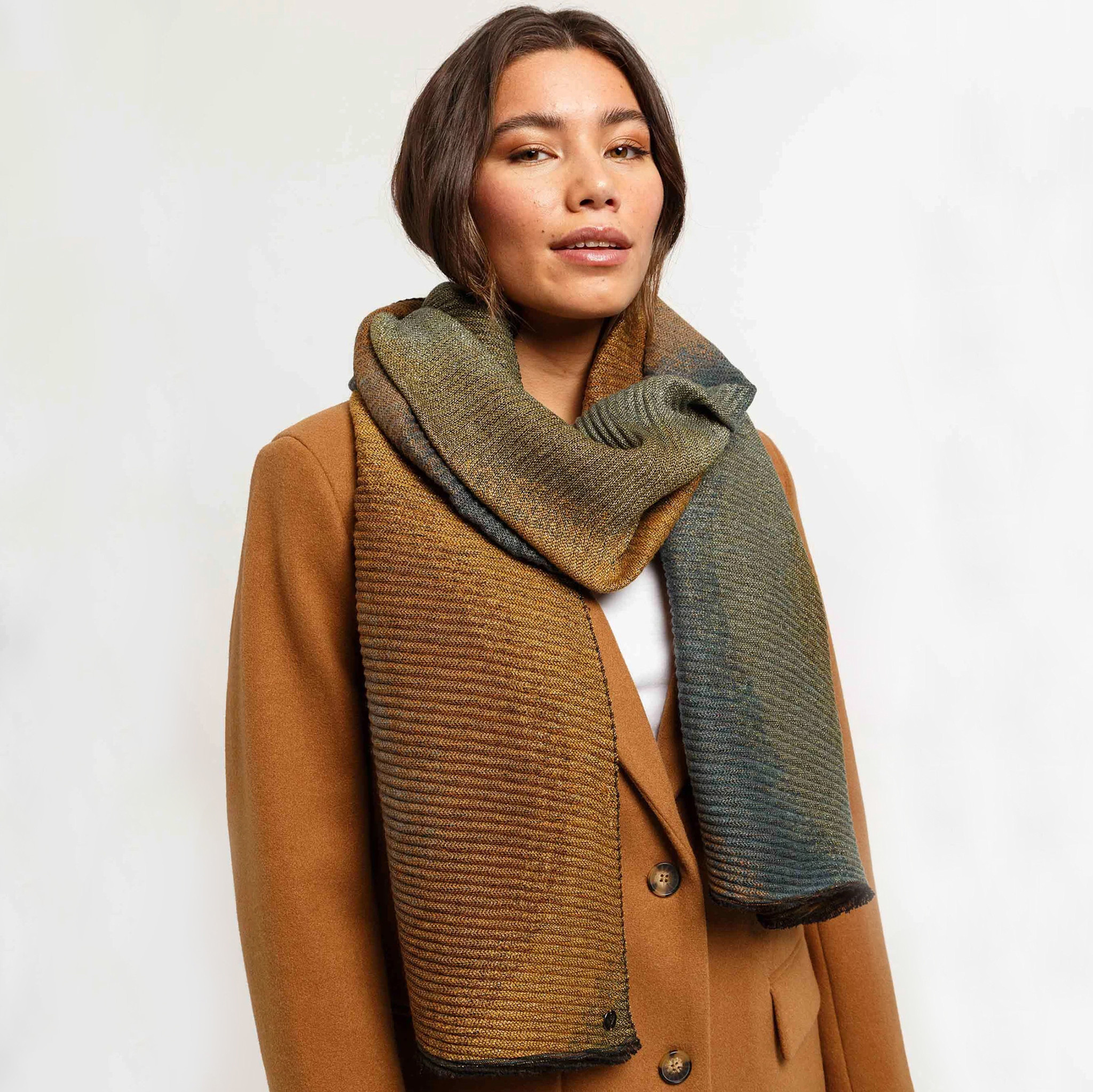Discover the glittering pleated scarf with a wave design, which creates impressive volume around the neck. The high-quality polyester is pleasantly soft, easy to care for and hugs your skin perfectly. The harmonious color gradient in combination with sparkling threads gives your look a special shine. Ideal for festive occasions or stylish everyday outfits - wear it loosely around your neck or elegantly looped. A FRAAS must-have for women!