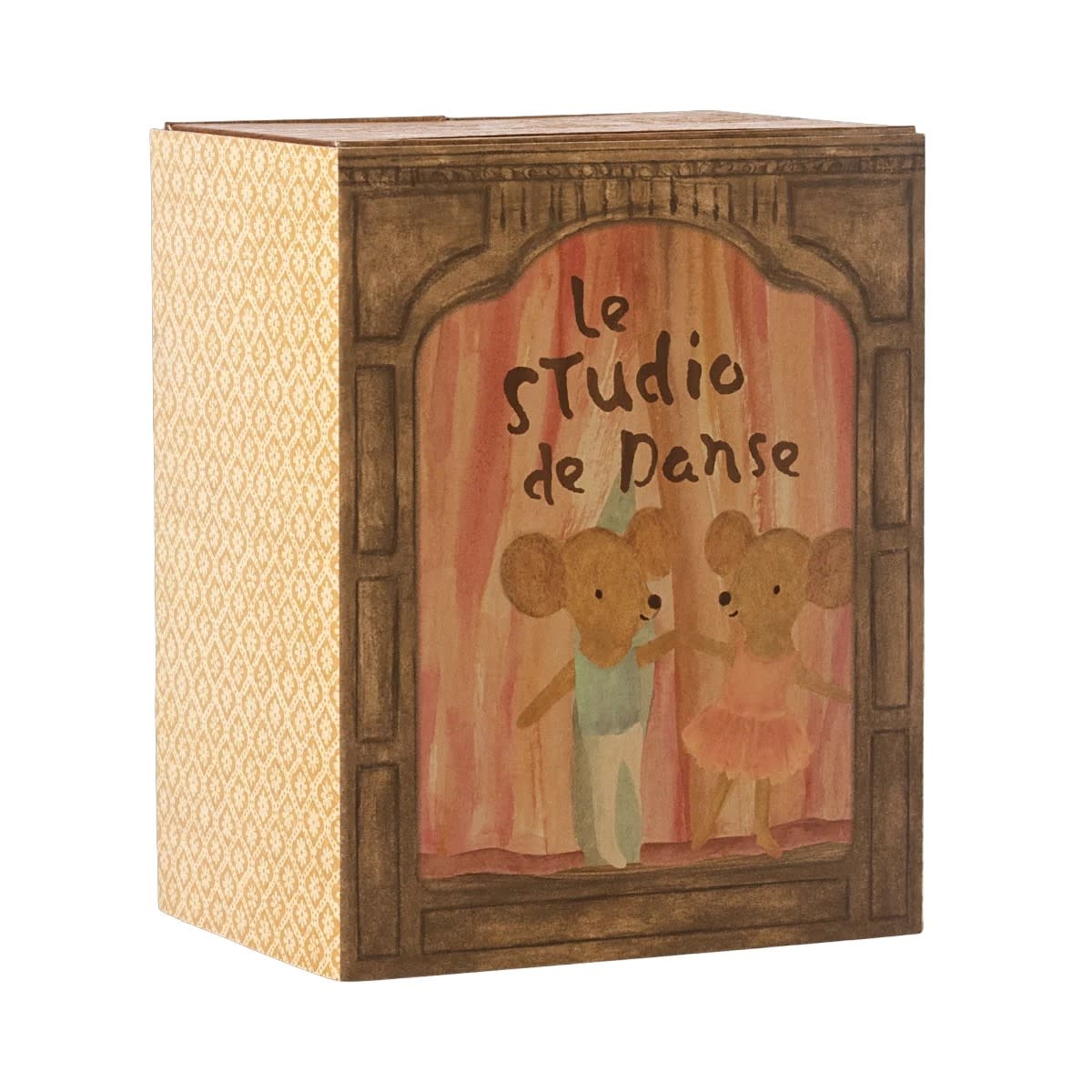 Open the doors of this magical playset from Maileg and explore a world of dance, stardust and storytelling. This enchanting set transforms from a cosy mouse house to a ballet studio where dreams take centre stage. The mirrored wall glimmers while the magnetic barre holds fast to every tiny paw as the mice rehearse their grand performance. Two ballet mice, already dressed for the spotlight, wait eagerly in their beds, ready to twirl and tell their stories on stage.