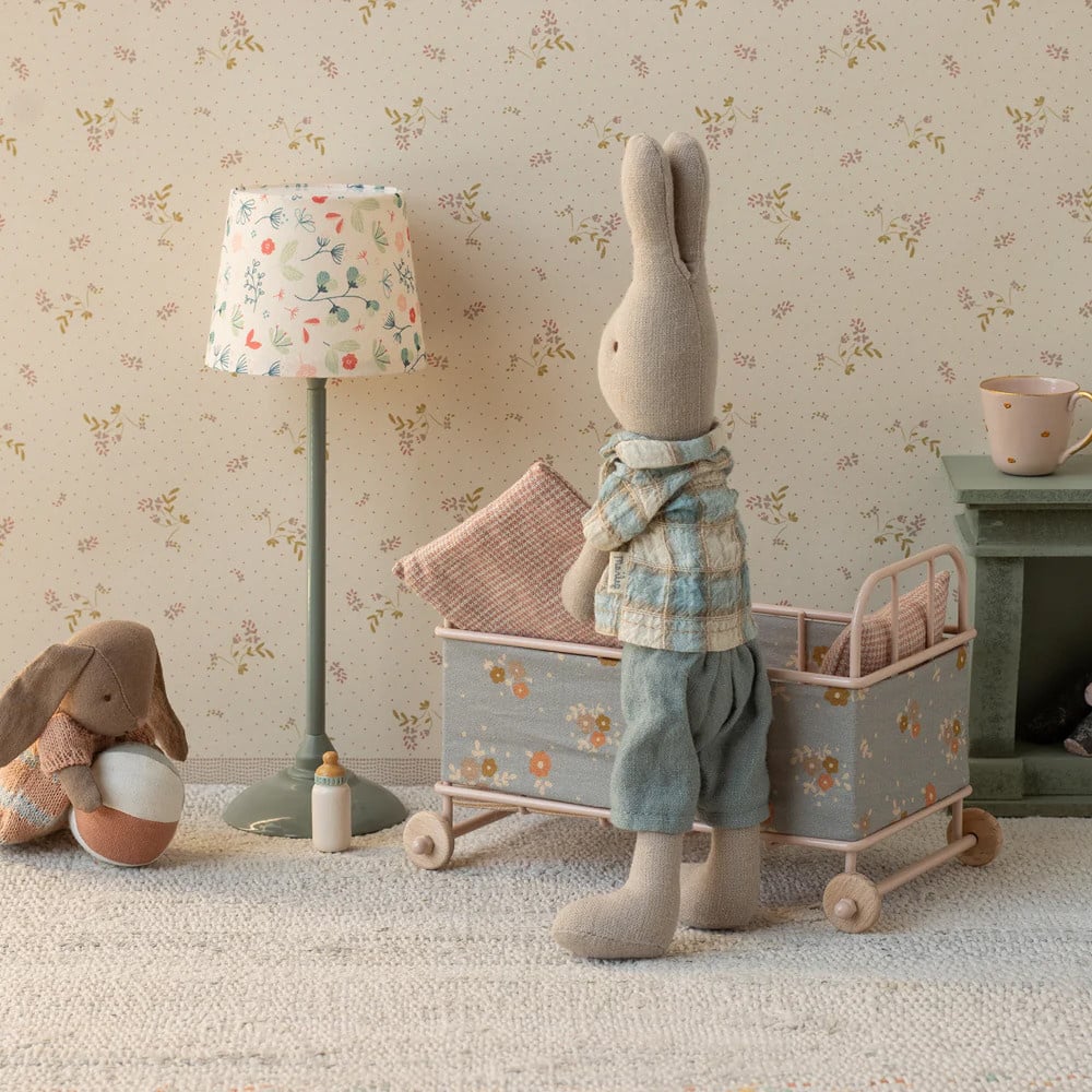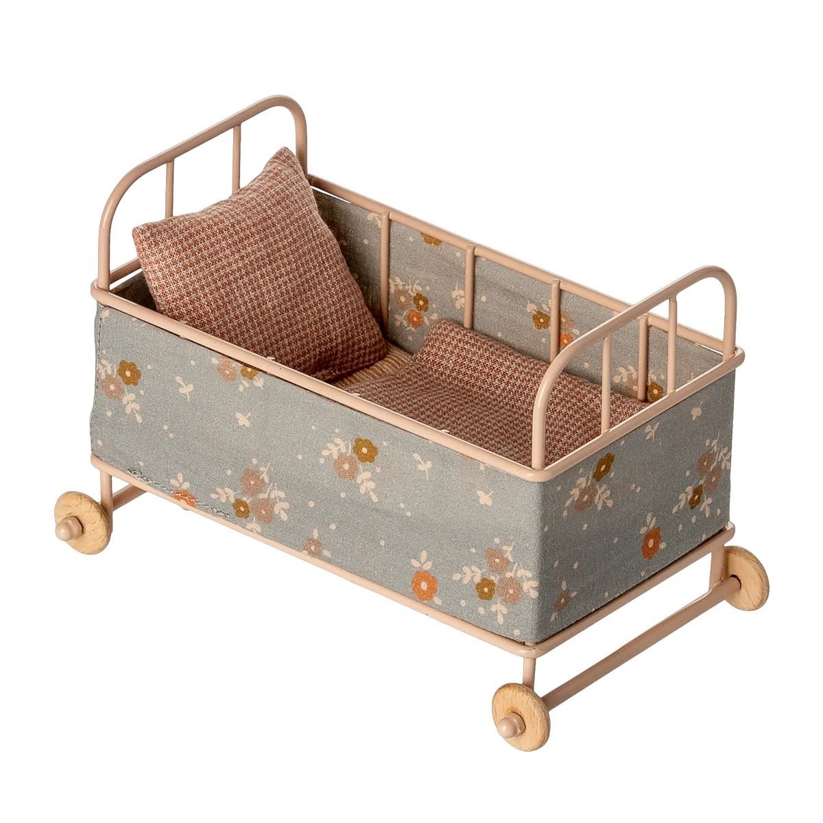 A cosy cot bed from Maileg made of metal, a lovely addition to your child's Maileg collection! It comes with a mattress, blanket, and pillow. It has a fabric cover to make sure the little ones can get their sleep. You can tuck in your micro sized friends as well as the small mice.
