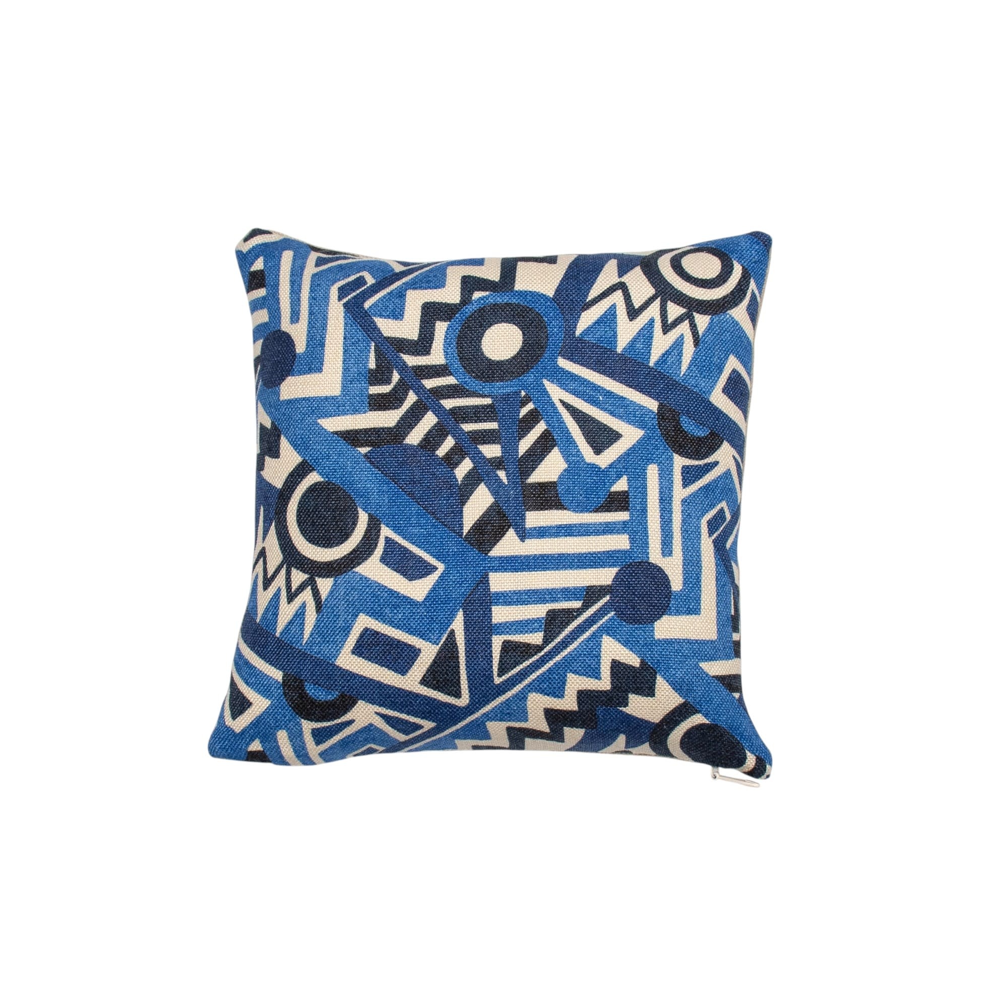 This striking mini pillow is crafted from Liberty’s Zig Zag Linen Aviator fabric, featuring the brand’s iconic geometric design in a crisp, contemporary colorway. Interlocking zigzags, circles, and angular forms unfold across richly textured linen in layered shades of cobalt, navy, and soft ivory, creating a bold yet balanced visual statement. The natural linen weave adds depth and character, grounding the graphic pattern with an organic, tactile finish. Perfect for accent chairs, sofas, beds, or styled shelves, this mini pillow brings a fresh pop of color and modern sophistication to any interior.