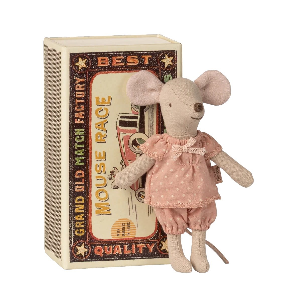 The Maileg Mouse Big Sister Polka Dots Outfit in Matchbox is perfect for your child's collection of toys! This adorable mouse doll is perfect for creating new ideas, adding more imagination to your child's playtime! Create fun and new ideas with this lovely Maileg mouse doll!