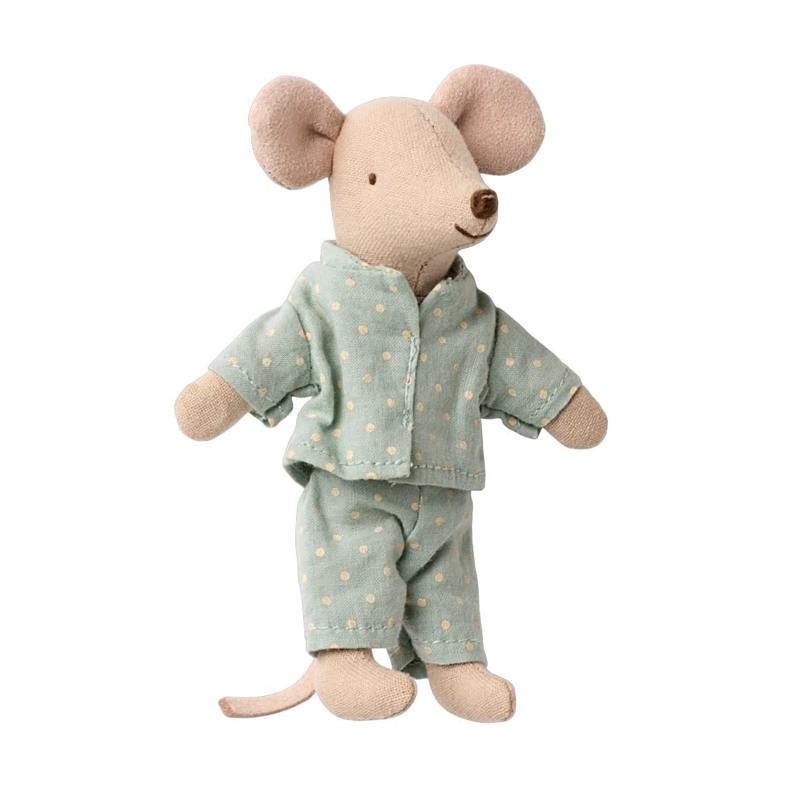 A Maileg favorite, this Little Brother Mouse comes tucked inside his very own matchbox bed. Dressed in cosy pajamas, he rests on a soft blanket with a little pillow, ready for sweet dreams. When he wakes, he is all set for hours of play before curling back up in his box at bedtime. Features magnets in both paws for extended play.