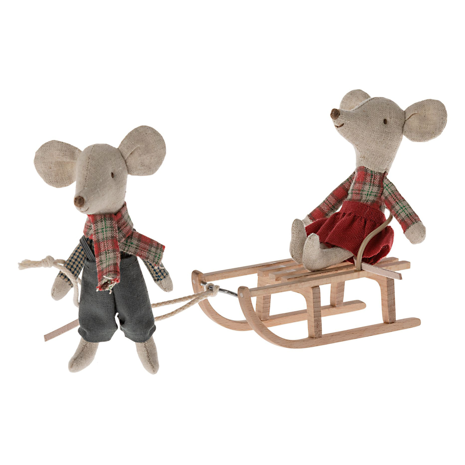 The Maileg Mouse Sled Wooden is a great accessory for your child's collection of toys! This wooden sled is the perfect accessory for wintertime when the snow is falling. Keep the string attached so it's easy to pull your friends around in the snow. This sled accessory is sure to add extra imagination to your child's playtime!