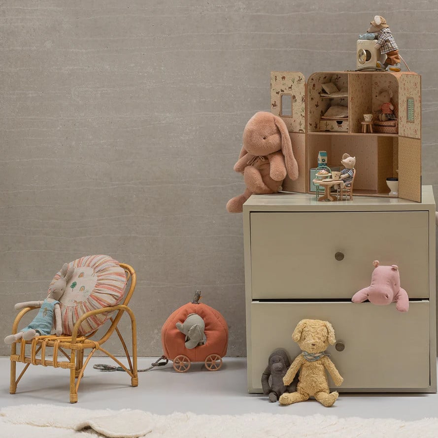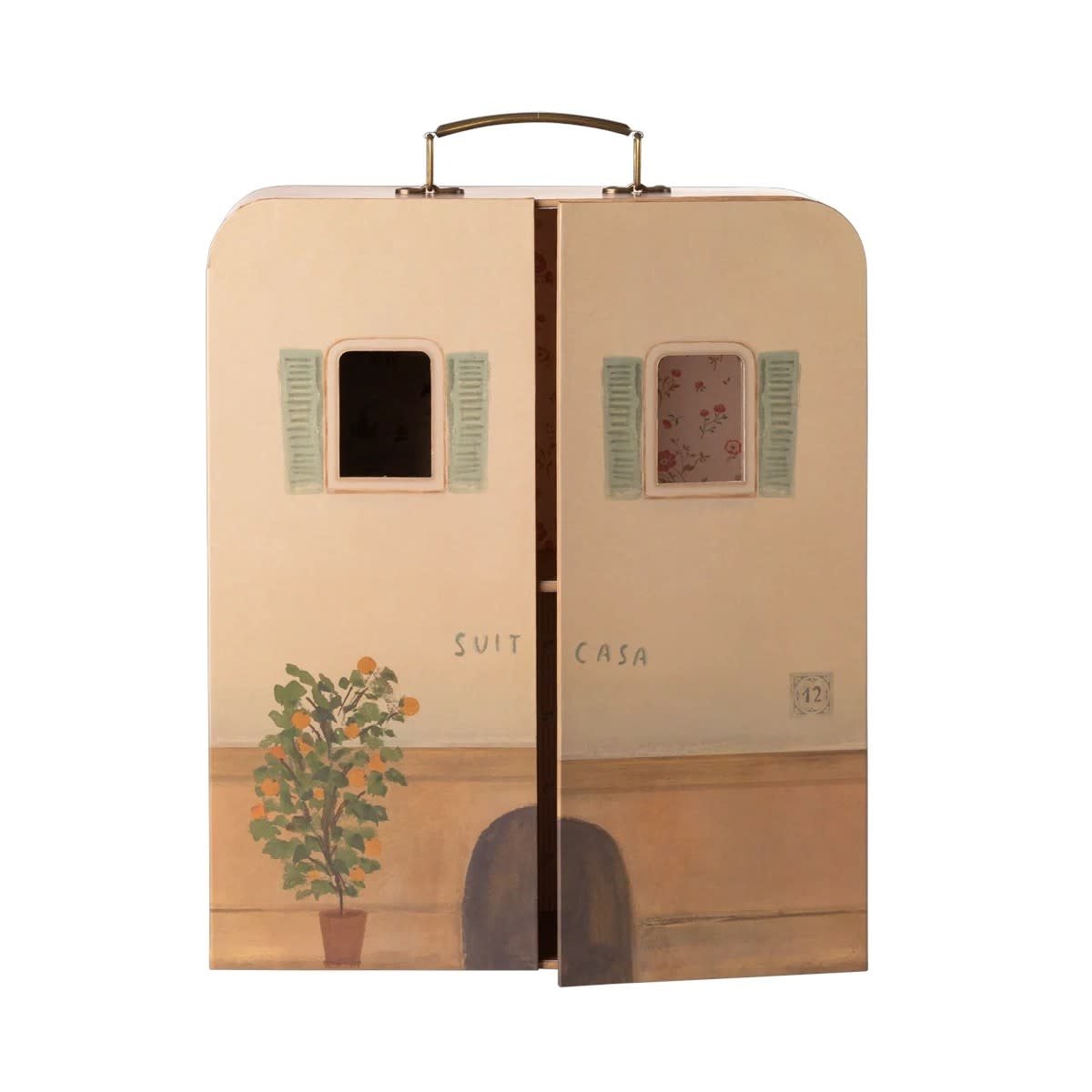 Welcome to the SuitCasa from Maileg, a charming portable mouse house perfectly sized for Little Brother and Little Sister mice. With a convenient handle, it transforms into a suitcase when the magnetic doors are closed, making it easy to take your mice on adventures. Inside, two built-in beds with soft bedding provide a cosy place to sleep, and there is plenty of room to add small mouse-sized furniture and accessories to create a personalised, cosy home on the go.