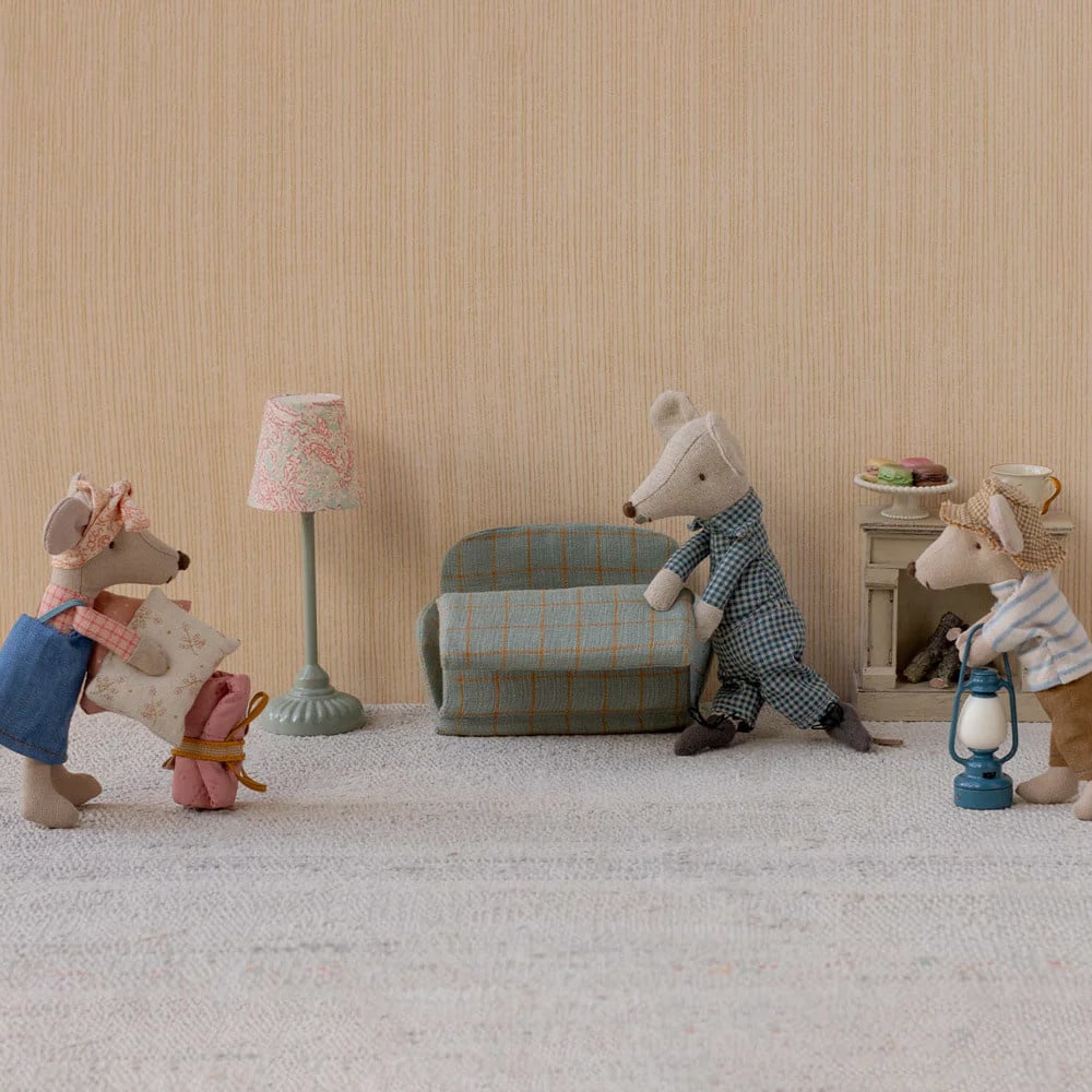 The beautiful Maileg vintage floor lamp is a must-have. The lamp will light up the room with a soft tone - remember to turn off the light when our friends go to bed. The product comes without battery. You can add a coin cell battery (CR2032). A lovely addition to your child's Maileg collection!