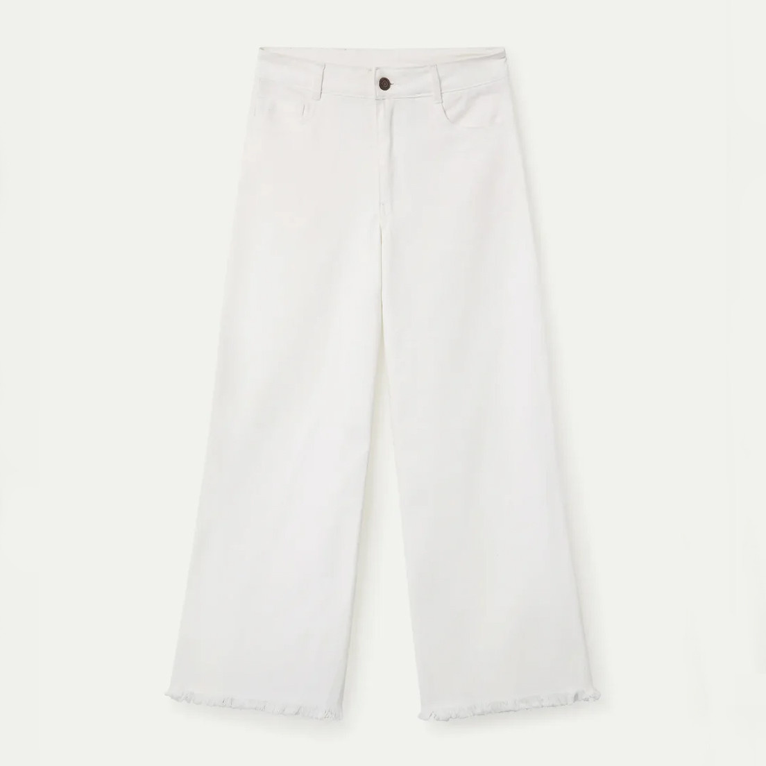 Clean, crisp, and effortlessly versatile, these white denim pants from Compania Fantastica are a modern wardrobe essential. Designed with a flattering high-waisted fit, they feature a straight-leg silhouette that offers a relaxed yet polished look. Crafted from durable denim, they include a classic zip and button front closure along with functional side and back pockets. The subtly frayed hem adds a touch of laid-back charm, making them perfect for both casual styling and elevated everyday outfits.