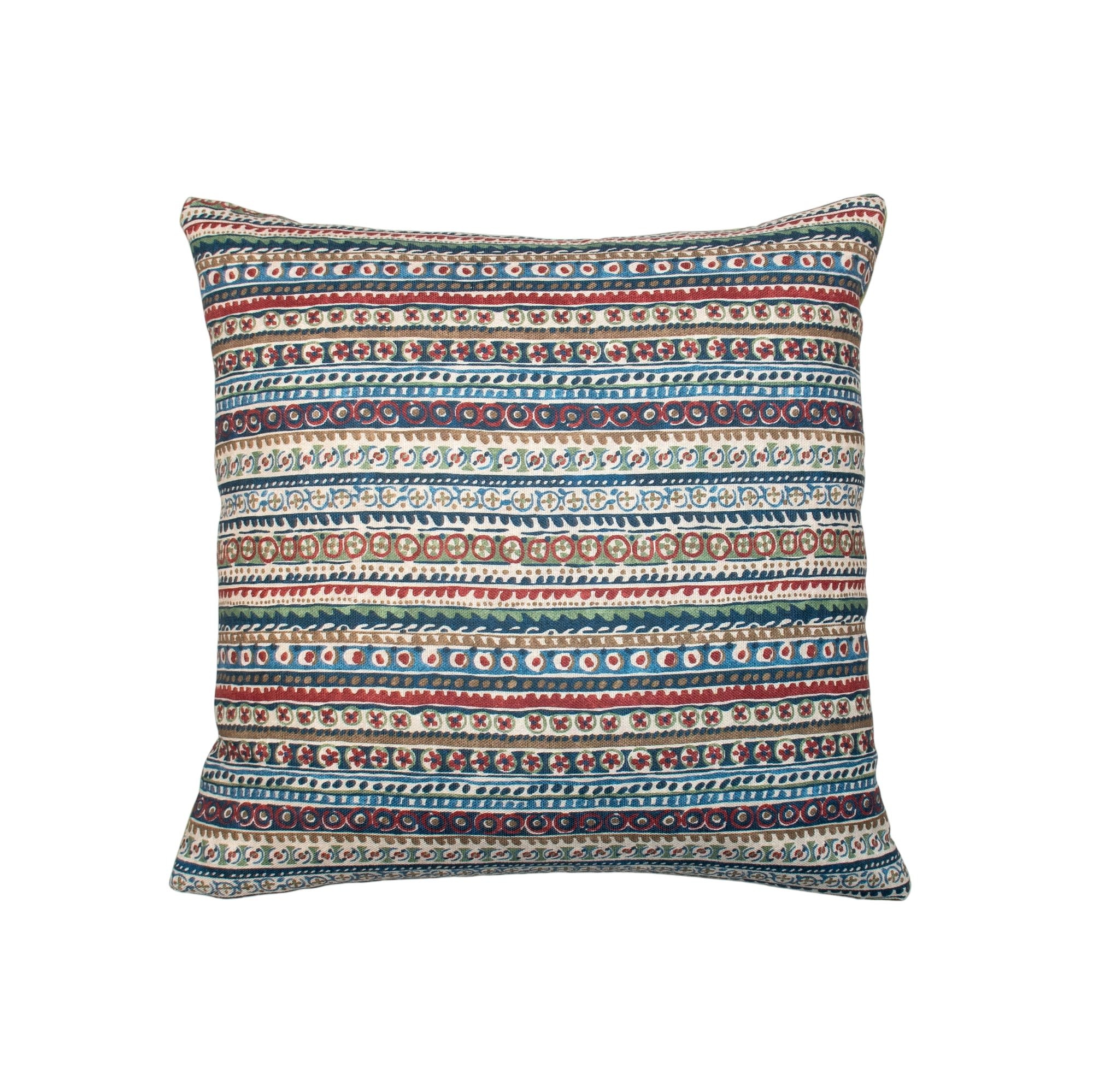 The Kreatelier Macaranda Tigris Pillow has a small scale multi patterned stripe created from a Nina Campbell archived print. It has been printed on a linen/cotton fabric suitable for both upholstery & drapery. The loosely painted geometric shapes are full of fun & wit.