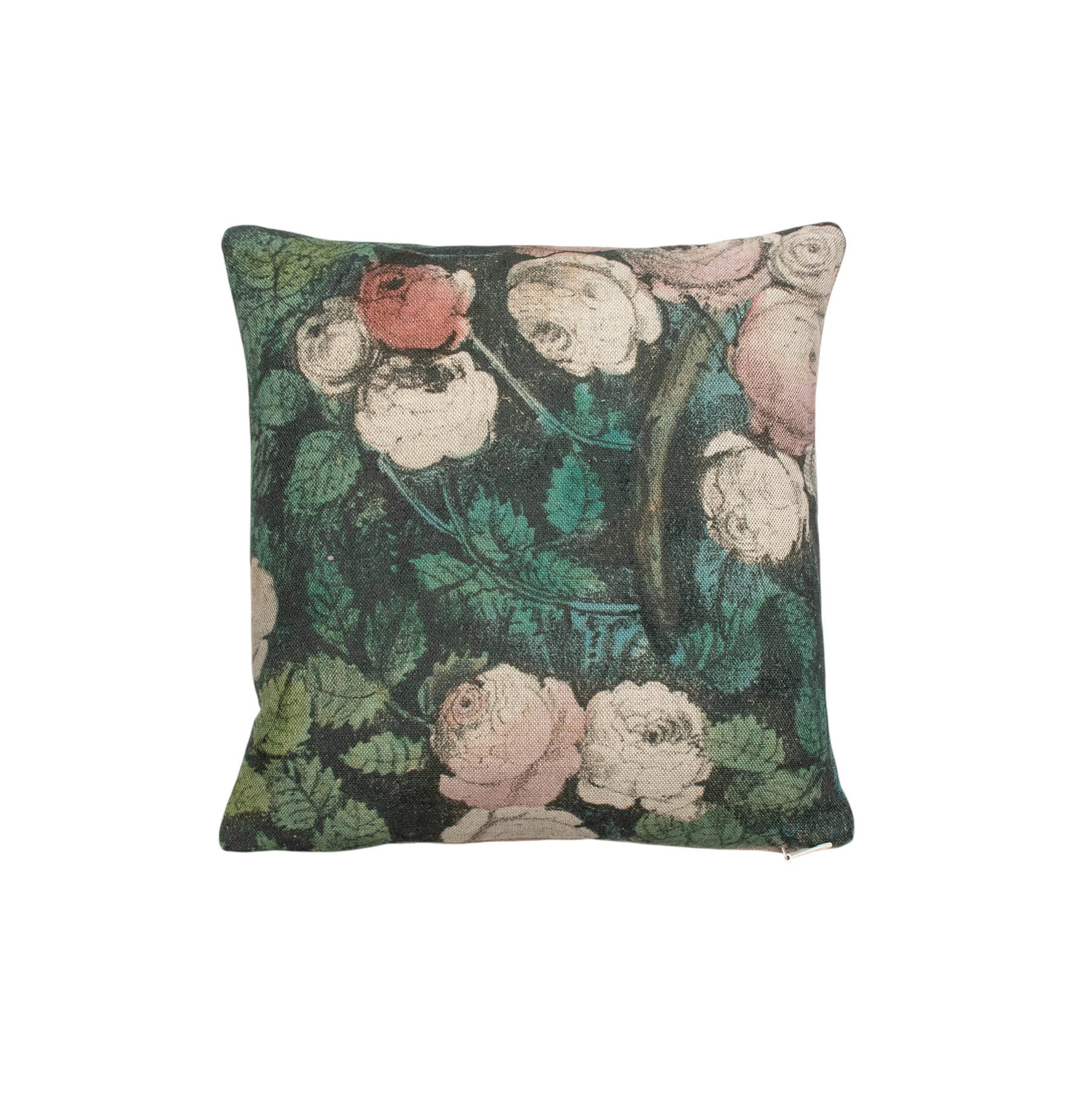 This floral pillow brings a moody, romantic elegance to your space. Set against a deep, forest-green background, the design features softly rendered vintage-style roses in shades of blush, ivory, and muted pink, layered with lush green foliage for a rich, textured look. The darker palette gives the classic floral motif a refined, slightly dramatic feel. Perfect for adding depth and warmth to a sofa, bed, or accent chair, this pillow pairs beautifully with velvets, linens, and neutral tones—creating a cozy, timeless accent with subtle sophistication.