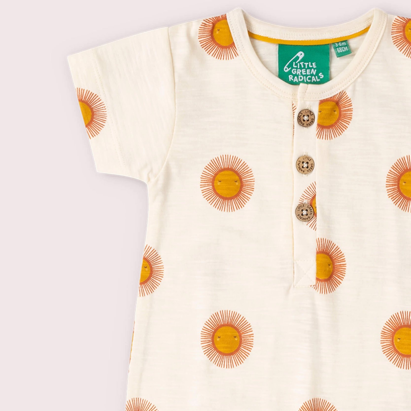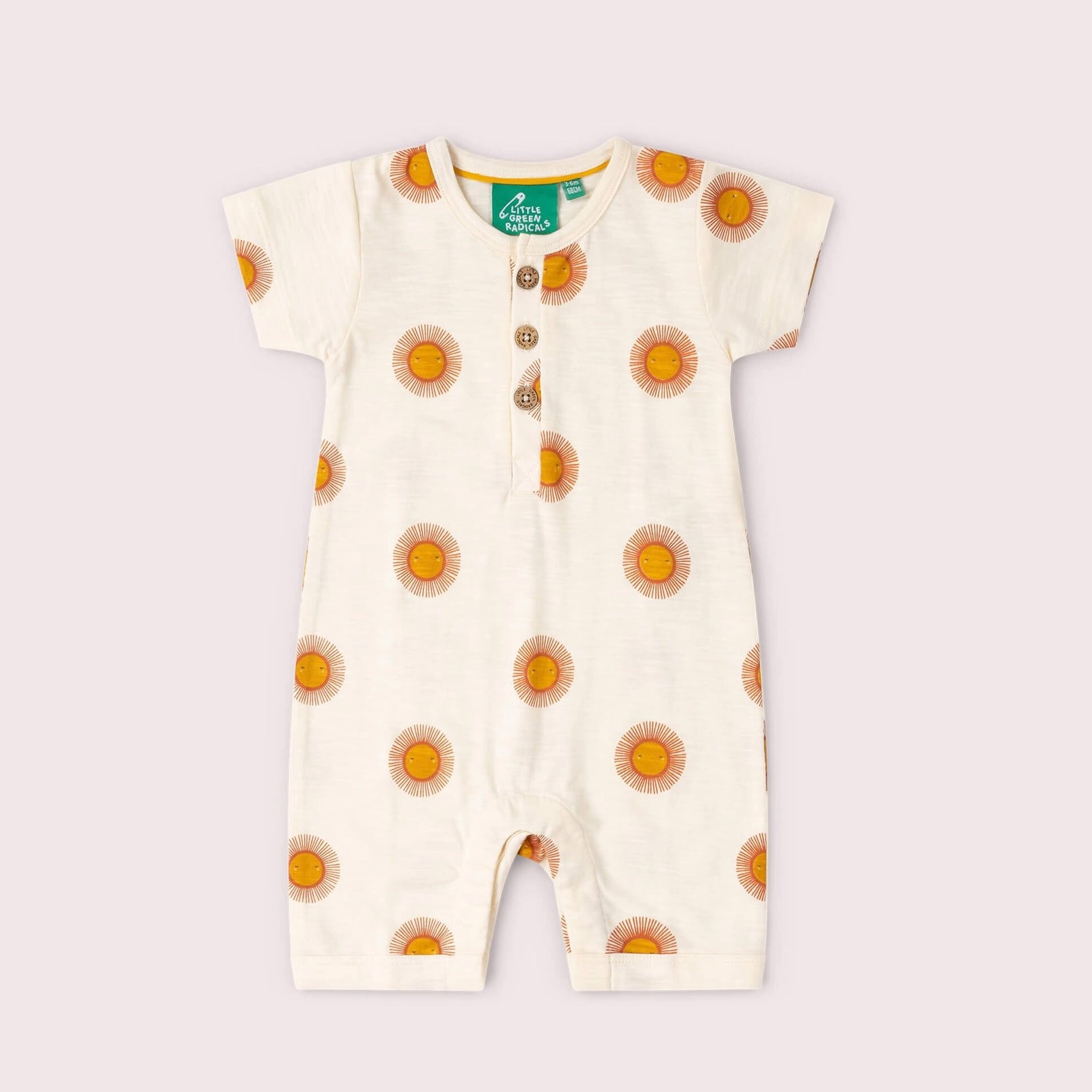 Bright, cheerful, and made for sunny days, the Summer Sun romper from Little Green Radicals is crafted from 100% organic cotton that will feel beautifully soft against your babies skin. Featuring an adorable all-over sun print, it brings a playful and warm feel to your little one’s wardrobe. Designed with short sleeves and a relaxed fit, it includes a front button placket for easy dressing and convenient snap closures at the bottom for quick changes. Perfect for warm-weather adventures, this romper combines comfort, practicality, and charm in one sweet piece.