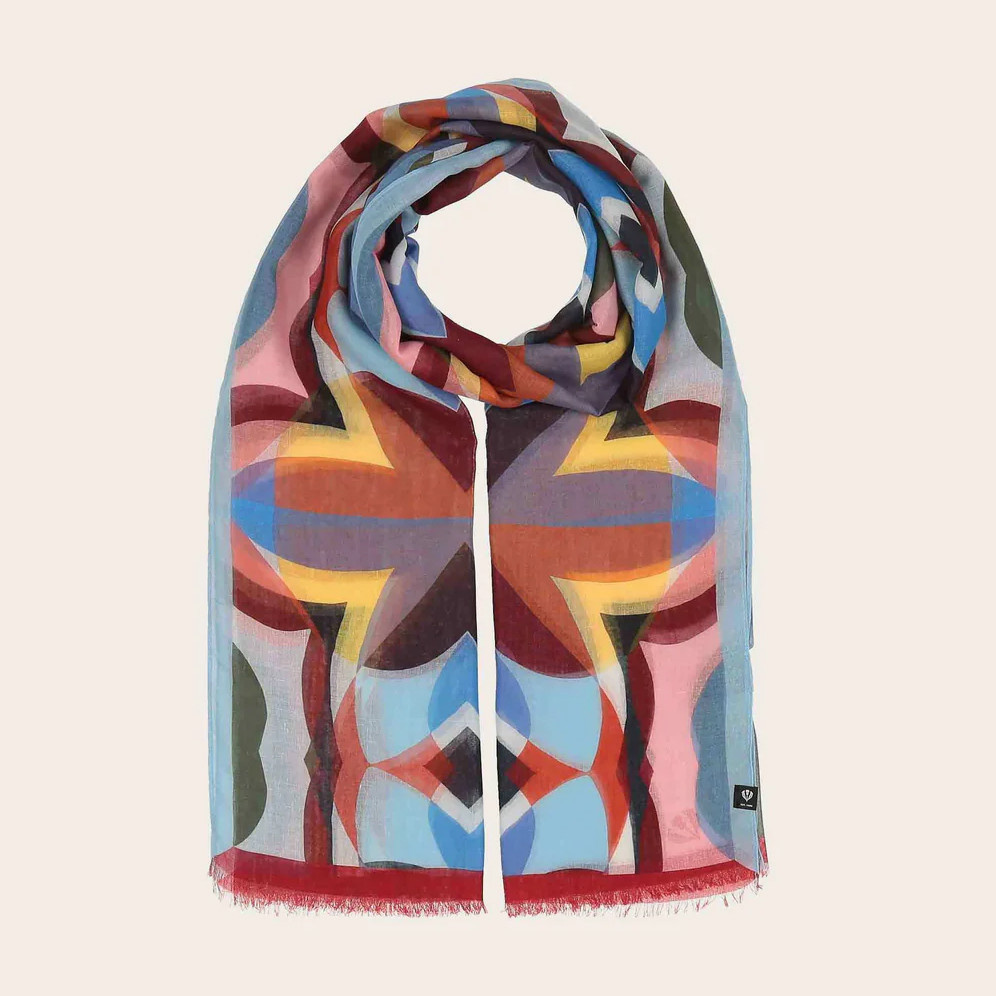 Retro charm for every look: the FRAAS scarf True Blue stole impresses with its geometric pattern and trendy color combinations in the style of the 60s/70s. This lightweight summer scarf is comfortable to wear all year round. Made from 100% recycled polyester from PET bottles - part of the sustainable FRAAS Sustainability Edition.