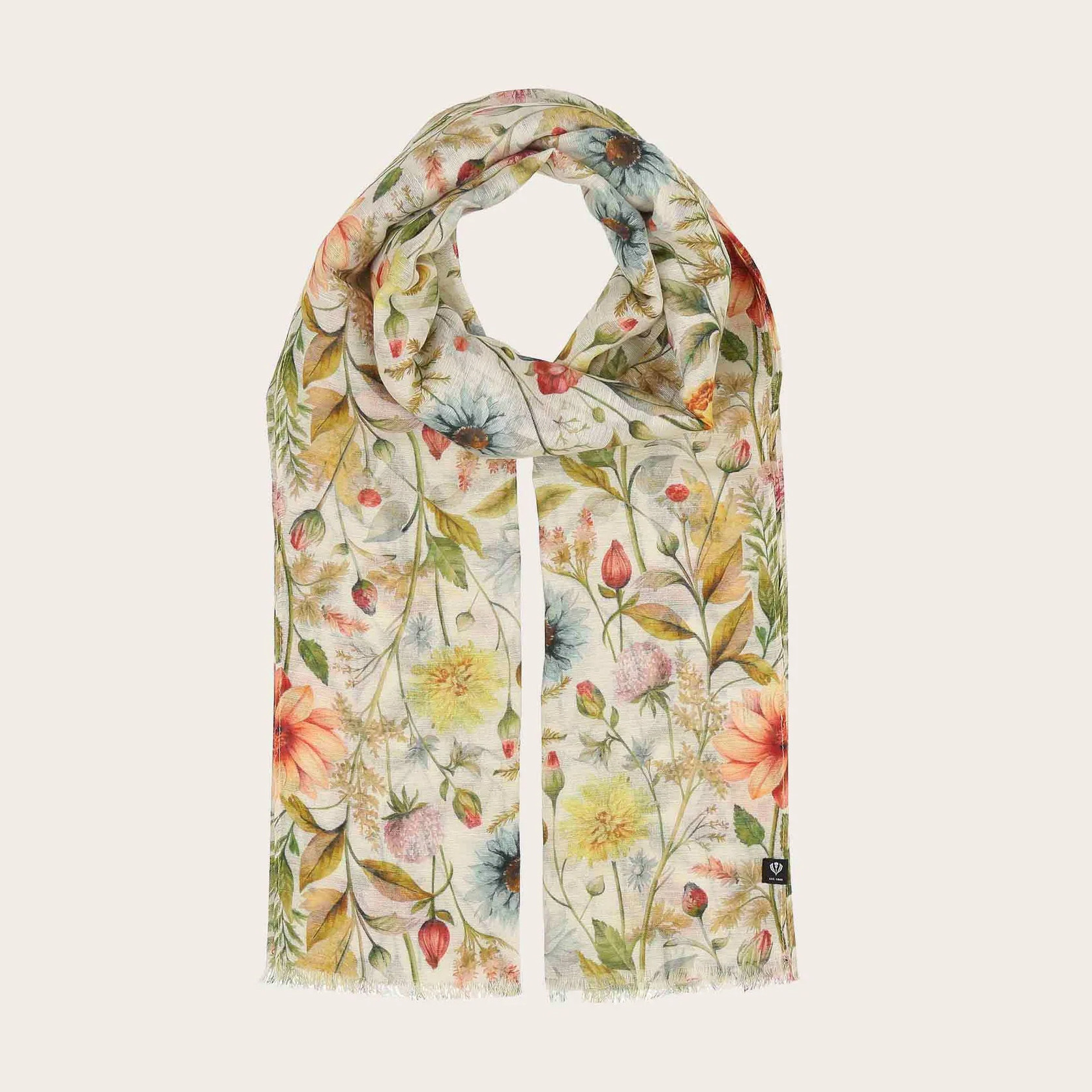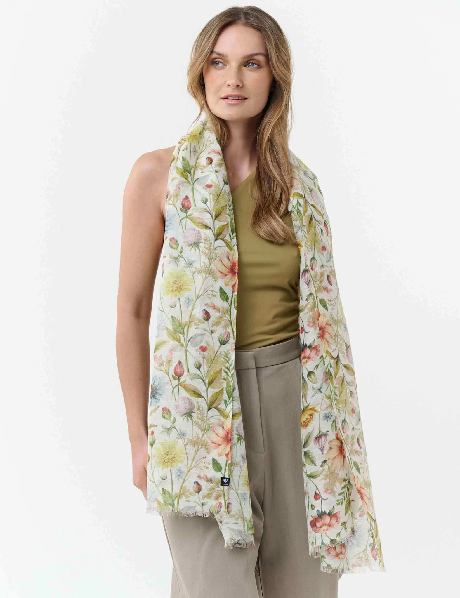 The FRAAS scarf with a vintage floral print gives any outfit a romantic, wonderfully summery look. Light and airy thanks to the hemp-cotton blend, it is ideal for warm days. Perfect for combining with jeans and a T-shirt or a light summer dress - a stylish companion for feminine summer looks.