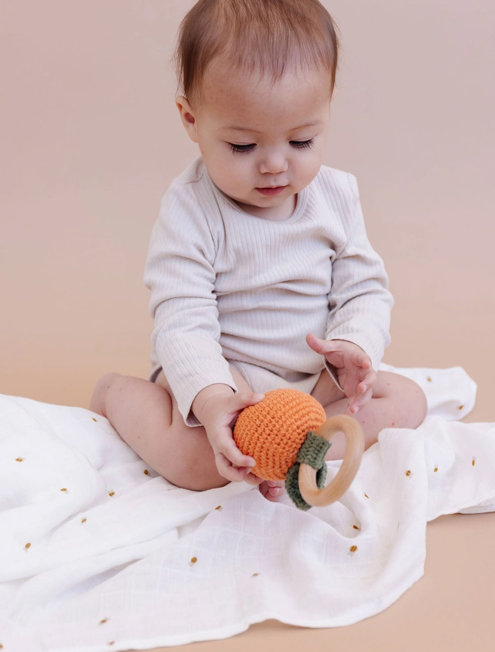 Wrap your little one in softness and sweetness with the Bee Honey Bear swaddle blanket from Blueberry Hill. Crafted from ultra-soft, breathable muslin, this lightweight blanket is gentle on delicate skin while providing the perfect cozy layer for naps, cuddles, and on-the-go comfort. Featuring a charming scattered bee motif on a warm ivory background, it brings a touch of nature-inspired whimsy to everyday essentials. Generously sized for easy swaddling, it also doubles beautifully as a stroller cover, nursing wrap, or light play blanket.