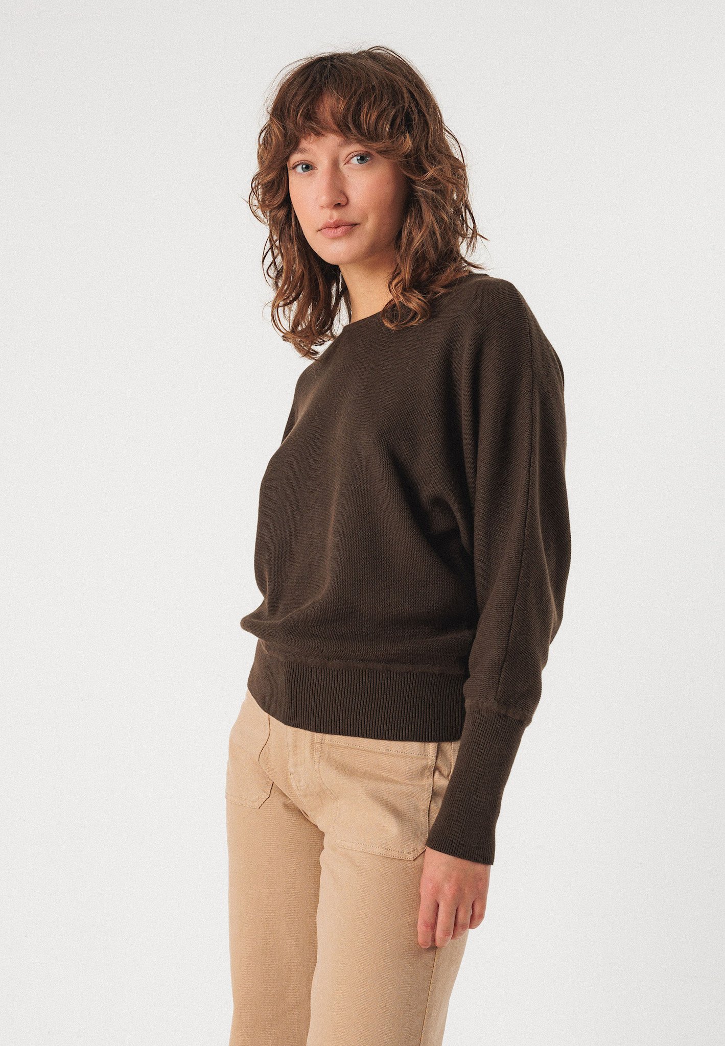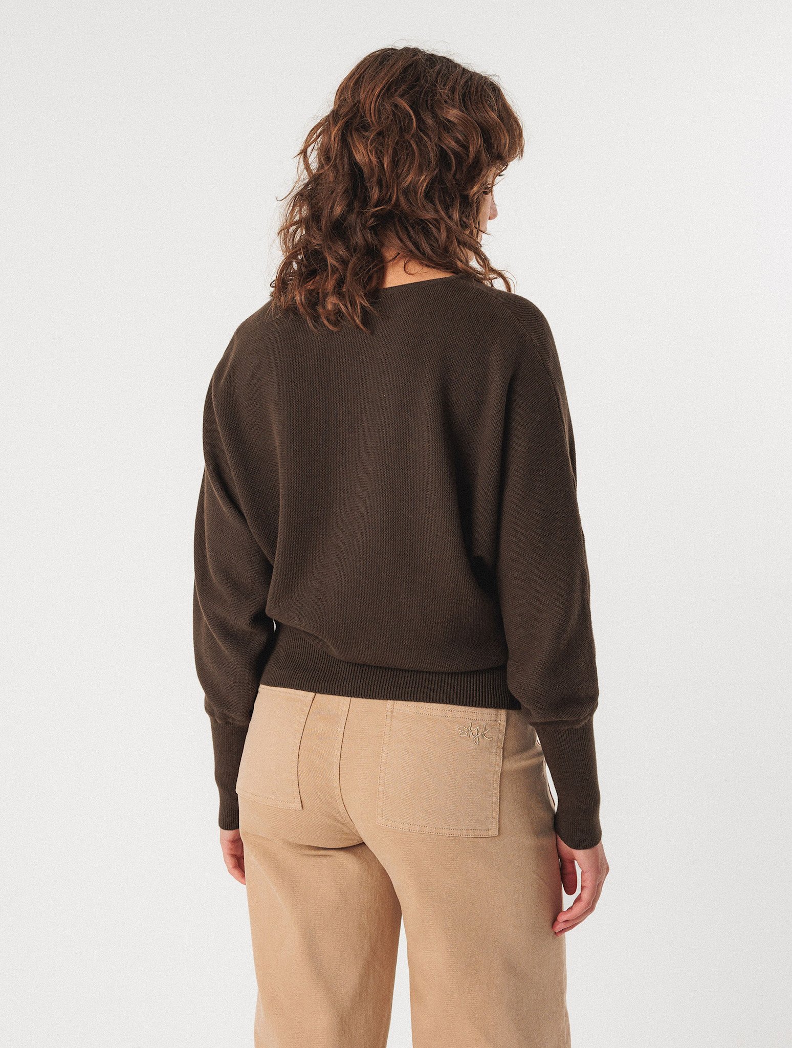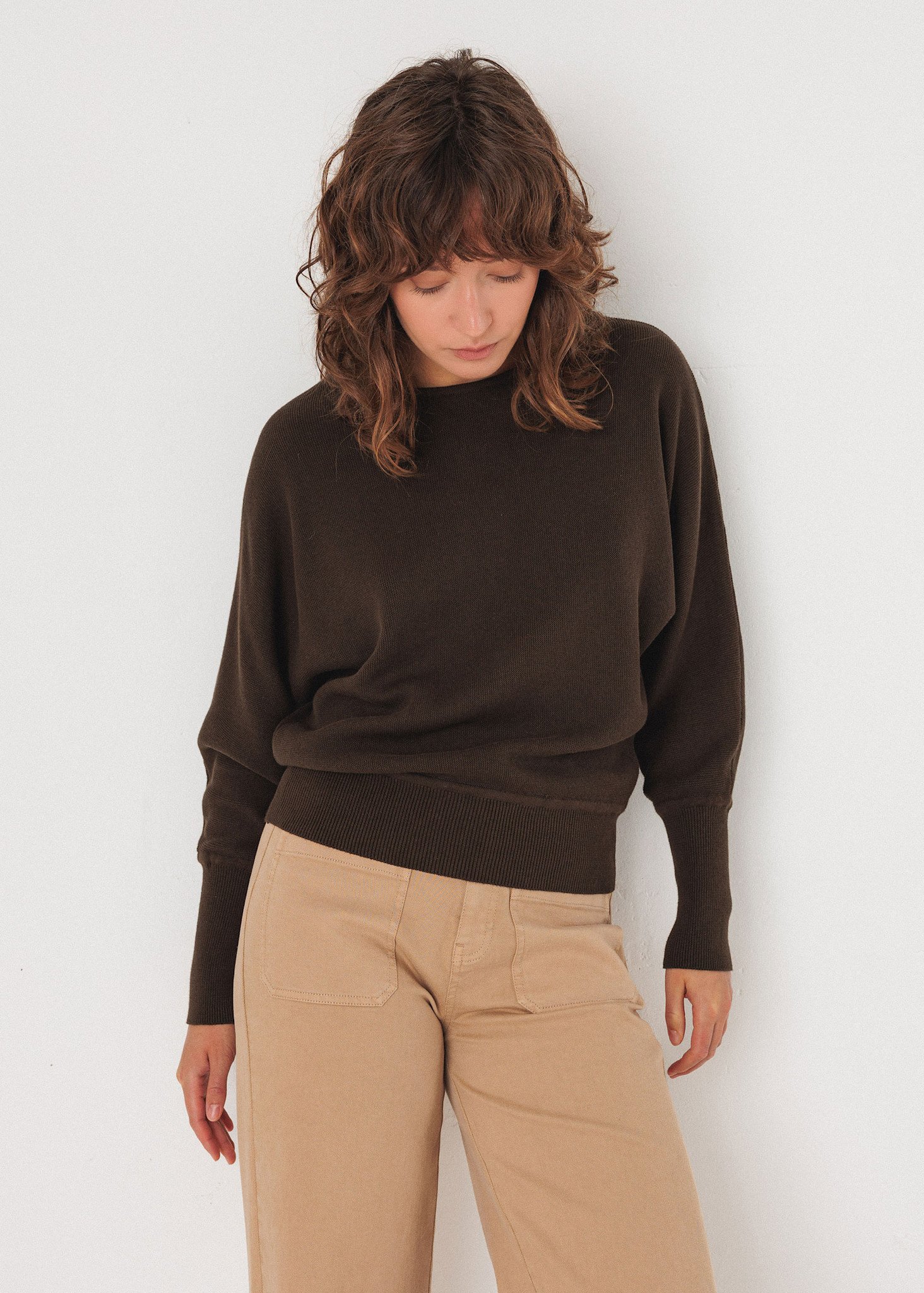 Soft texture meets easy elegance in this midweight garter stitch knit sweater from SKFK, featuring a classic round neckline and relaxed batwing sleeves for effortless drape and movement. The garter stitch adds subtle dimension and a cozy hand feel, while the midweight construction makes it perfect for layering across seasons.