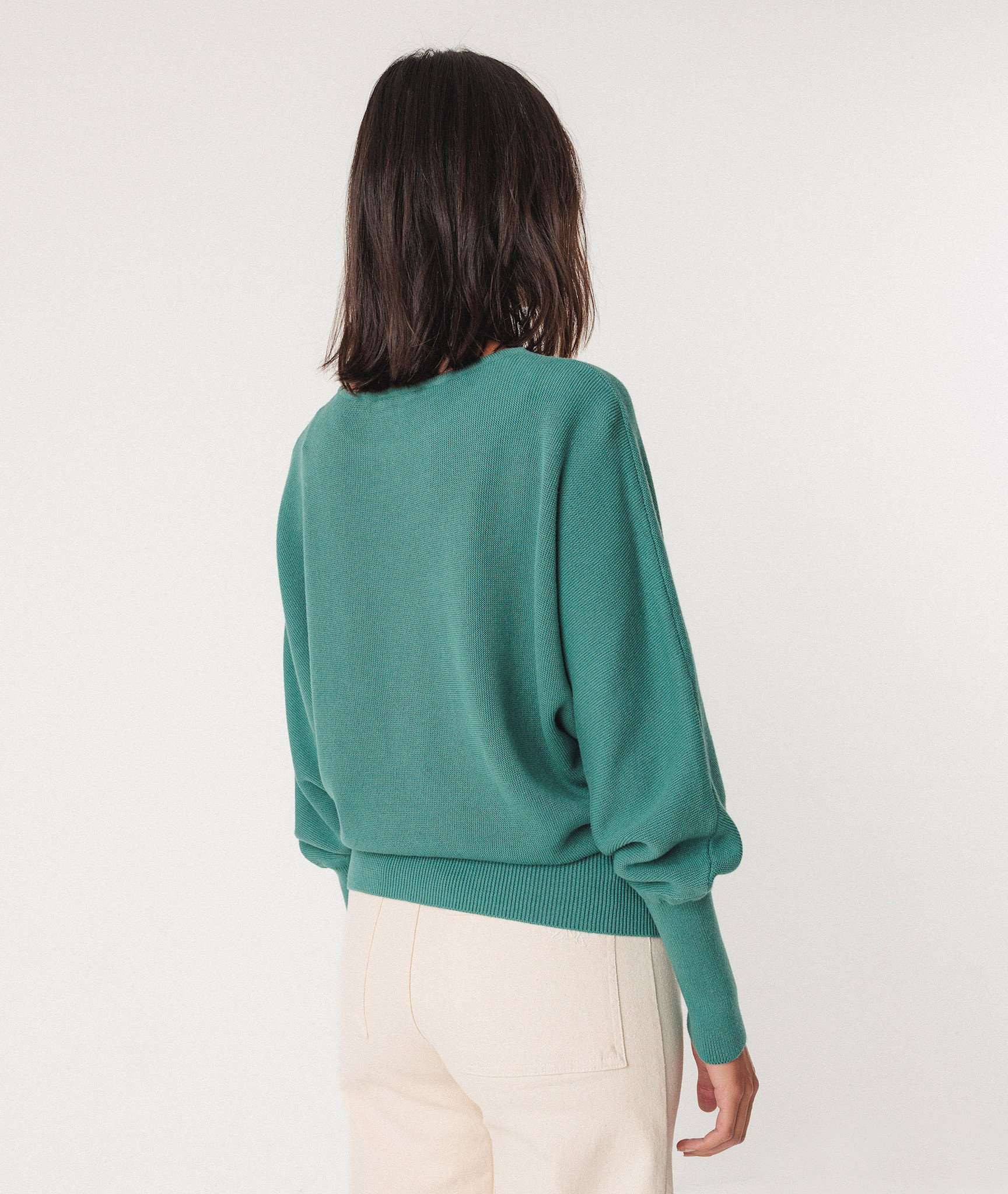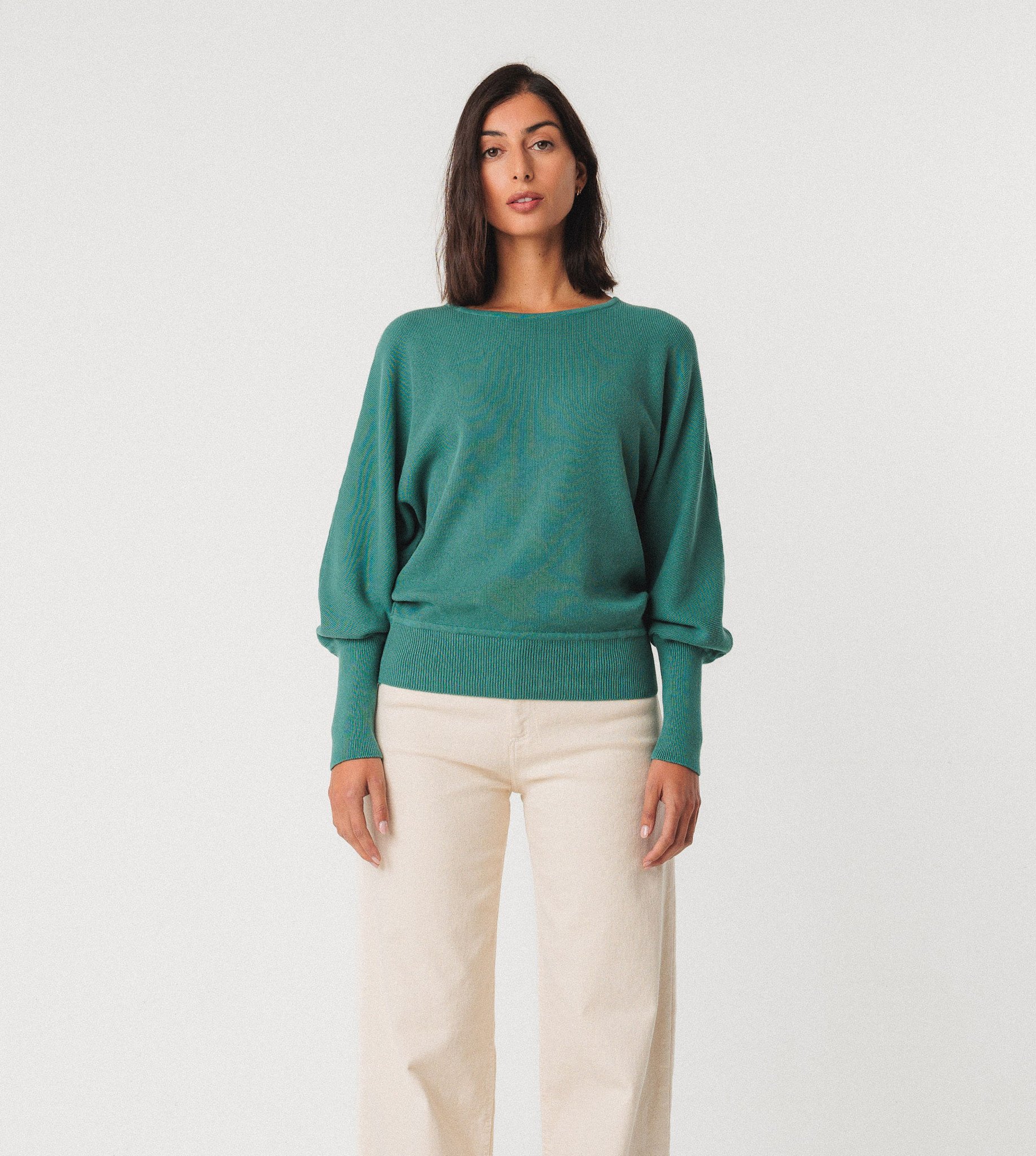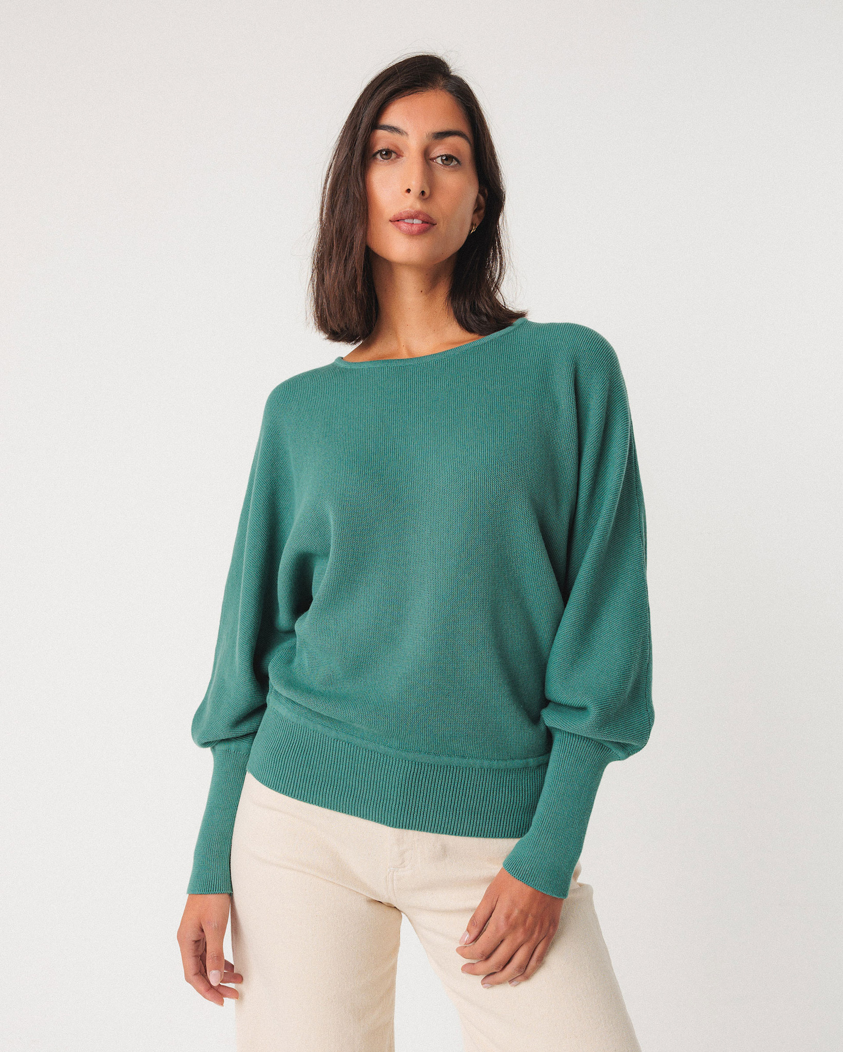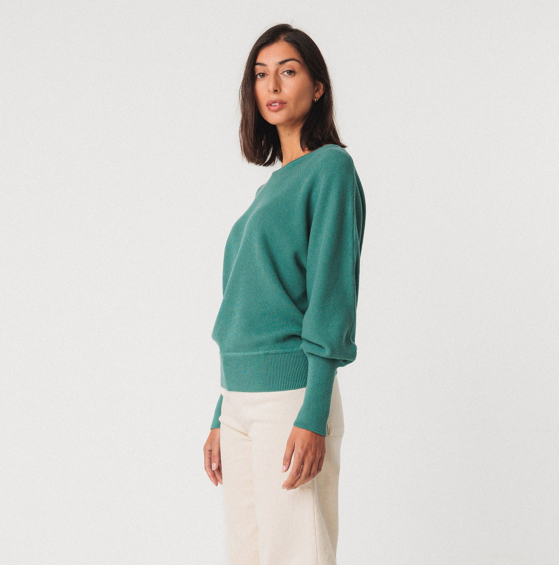 Soft texture meets easy elegance in this midweight garter stitch knit sweater from SKFK, featuring a classic round neckline and relaxed batwing sleeves for effortless drape and movement. The garter stitch adds subtle dimension and a cozy hand feel, while the midweight construction makes it perfect for layering across seasons.