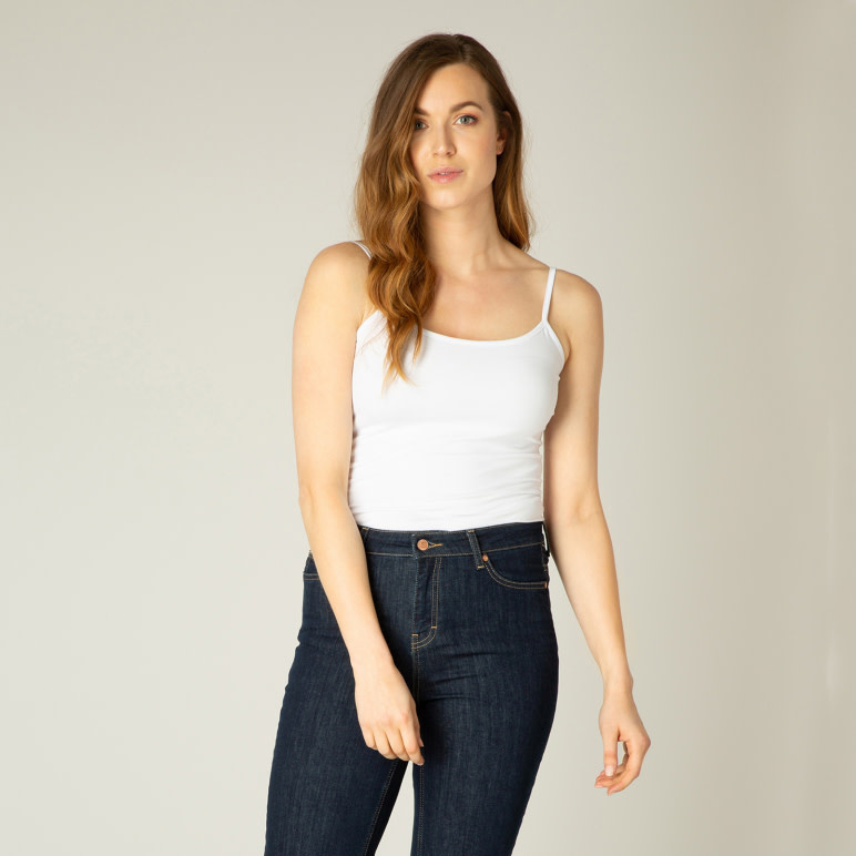 A wardrobe essential designed for everyday comfort and versatility, this white camisole from Yest features a soft, stretch fabric that gently hugs the body for a flattering fit. The minimalist silhouette is enhanced by a classic scoop neckline and delicate adjustable spaghetti straps for a personalized feel. Perfect for layering or wearing on its own, this timeless piece pairs effortlessly with denim, skirts, or tailored pants for a clean, understated look.