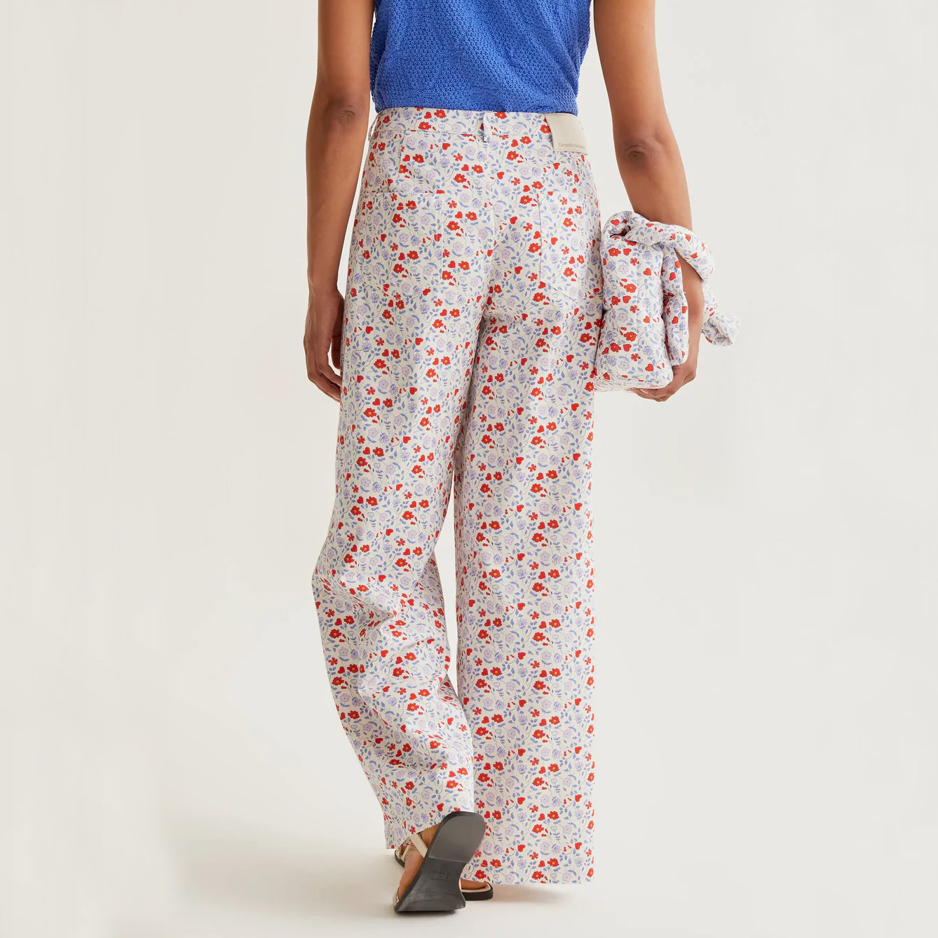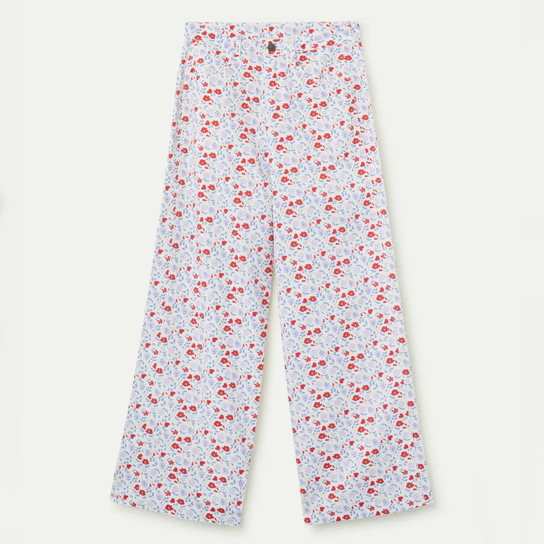 Playful and effortlessly stylish, these 100% cotton trousers from Compania Fantastica feature a charming all-over print that adds a fun, fresh touch to your wardrobe. Lightweight and breathable, they’re perfect for all-day comfort with a standout look. Designed with a fixed high waistband for a flattering fit, they feature a front zip and button fastening for a clean, structured finish. The wide straight-leg silhouette offers ease and movement, while side and back pockets add everyday practicality.