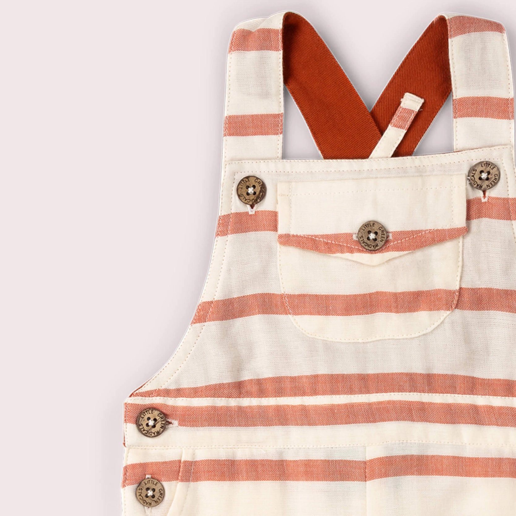 Timeless and playful, the Vintage Dungaree Shorts in red stripe from Little Green Radicals are crafted from 100% organic cotton for a soft, breathable feel. Designed with a classic silhouette, they feature adjustable shoulder straps, side button fastenings, and a charming front pocket for a nostalgic touch. Perfect for everyday adventures, these lightweight dungarees offer comfort and ease of movement, while the warm striped pattern adds a cheerful, vintage-inspired look.